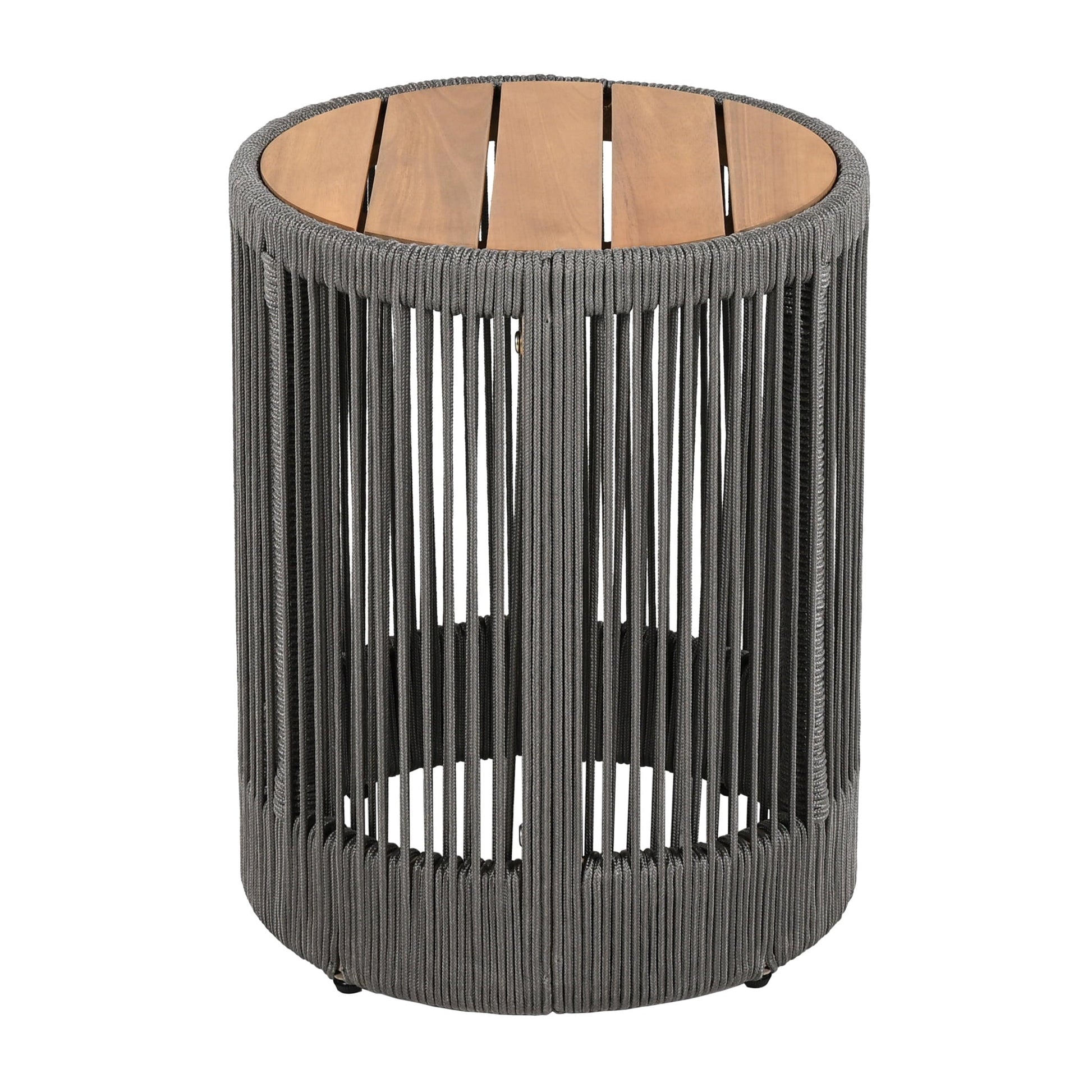 Christopher Knight Home 15" Round Side Table, Acacia Wood Top with Rope & Iron Base, Grey