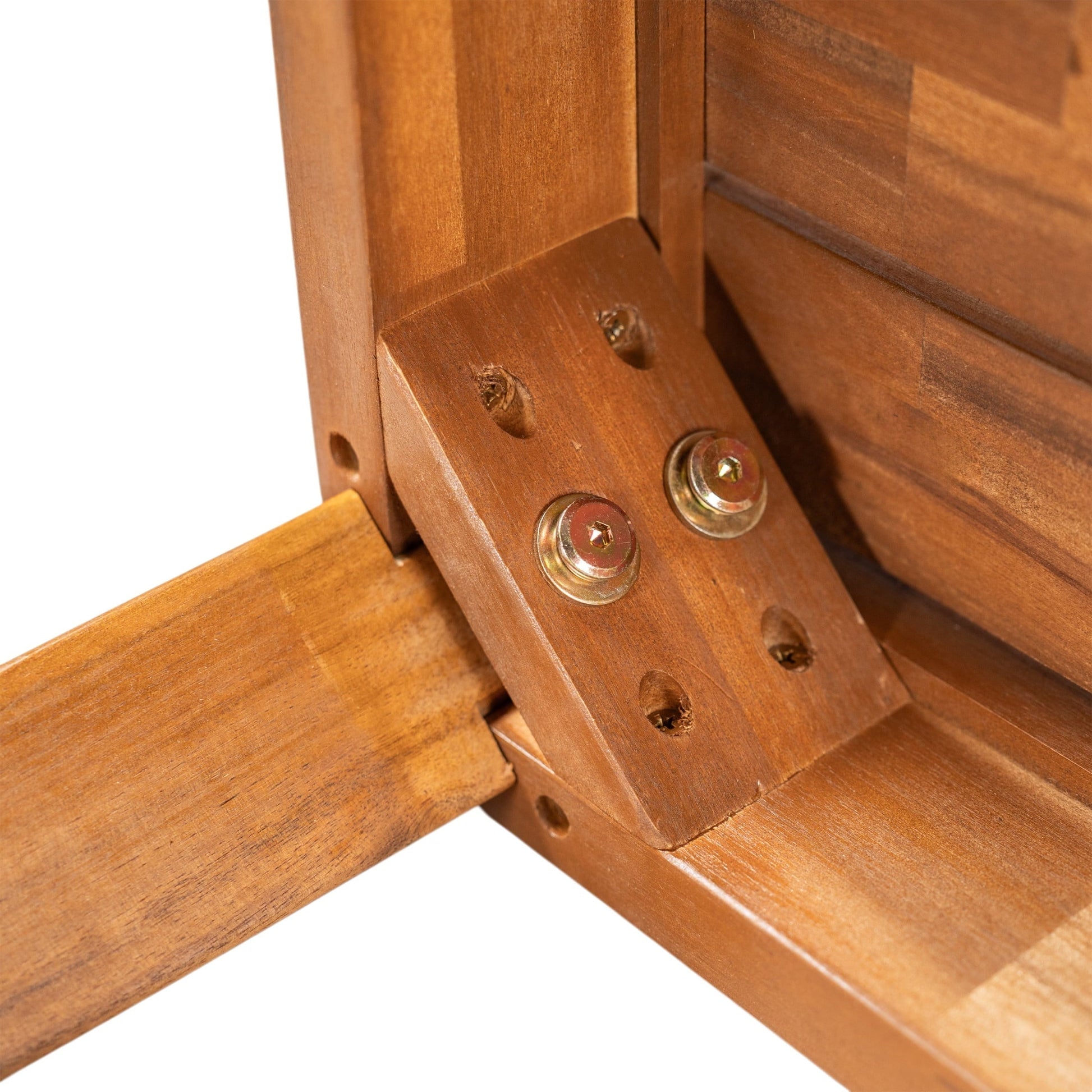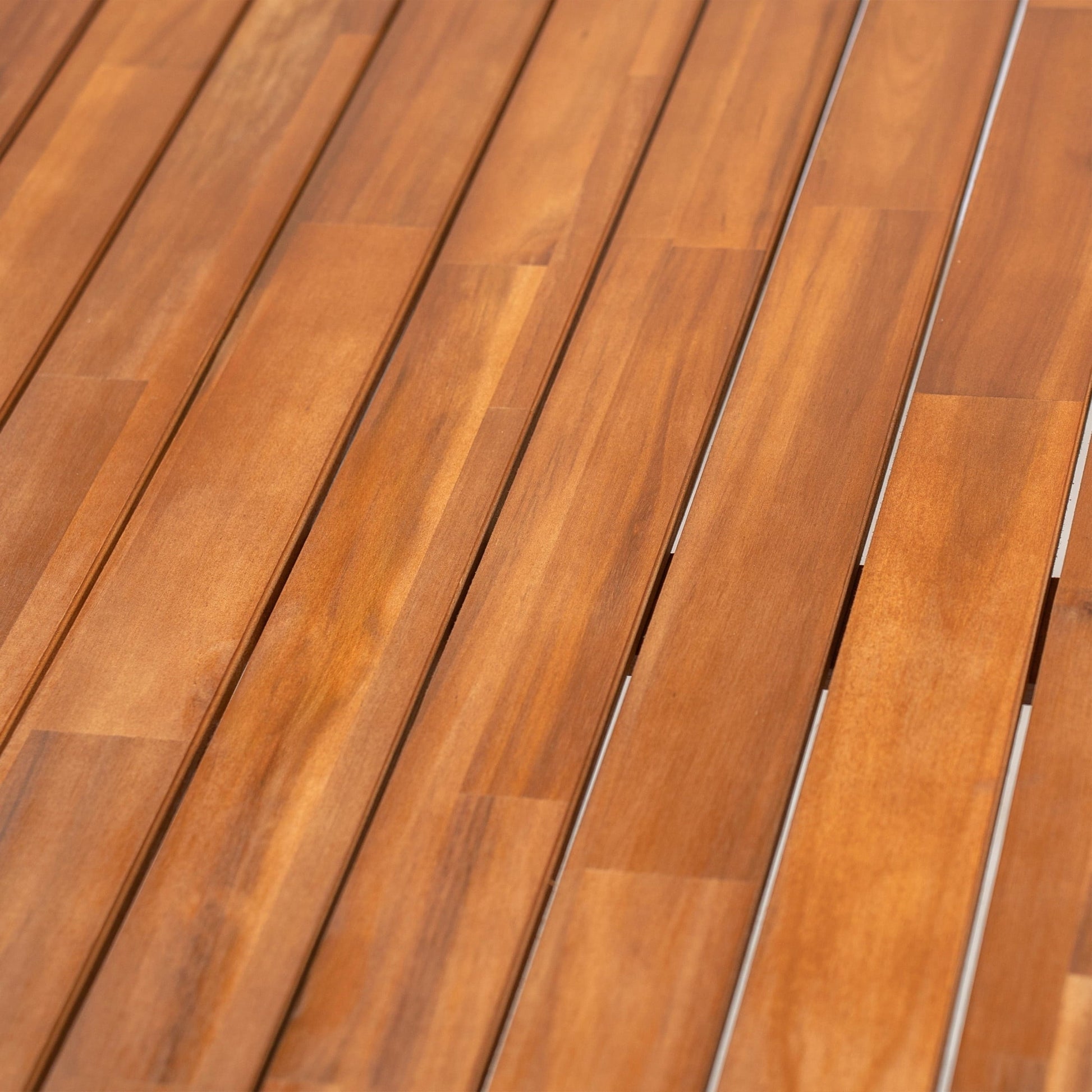 Crafted from solid acacia wood, this outdoor dining table brings natural beauty and functionality to your patio, deck, or garden. Its rich wood grain finish highlights the organic character of the wood, blending seamlessly with a variety of outdoor settings. Designed for durability, the sturdy frame provides a reliable surface for drinks, snacks, or decorative items. While naturally resistant to the elements, we recommend avoiding exposure to extreme temperatures to preserve its finish and longevity. This table is perfect for pairing with outdoor chairs or loveseats to create a warm, inviting gathering space..