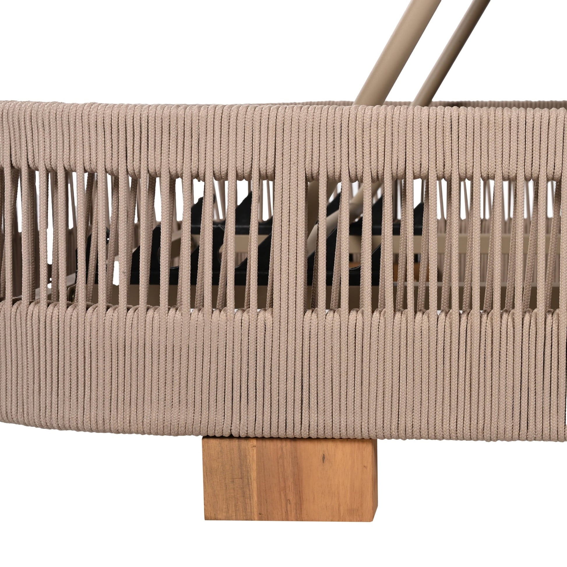 Transform your patio or poolside into a serene retreat with this elegant Outdoor Chaise Lounge Set featuring a teak-look acacia wood frame, beige rope detailing, and natural iron accents. The adjustable backrest offers five reclining positions, allowing you to find the perfect angle for reading, sunbathing, or relaxing. Crafted from durable acacia wood, this chaise is naturally resistant to decay and outdoor wear. The included beige cushion is filled with high-density foam and polyester fiber batting for plush, supportive comfort. Its water-repellent fabric resists moisture and is easy to clean—ideal for all-season outdoor lounging. The combination of rustic texture and modern functionality makes this set a stylish and practical addition to gardens, balconies, or pool decks.