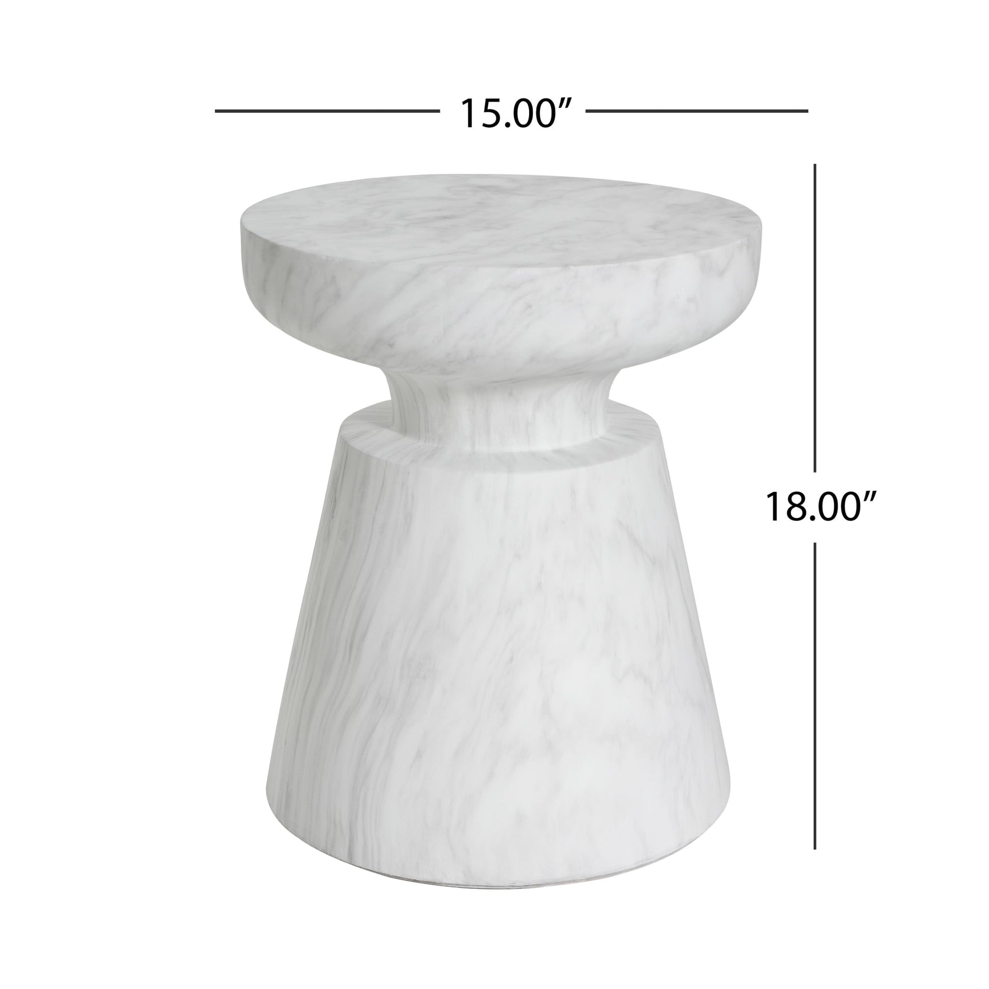 Bring character and style to your living space with this elegant travertine-finished side table, featuring a sculptural half-sphere tabletop supported by a solid pedestal base. Crafted from lightweight yet durable concrete, this table combines the look of natural stone with weather-resistant strength, making it ideal for both indoor and outdoor settings—from the living room and balcony to the garden or patio. Its neutral beige tone and luxurious texture effortlessly complement a wide range of interior styles, from modern minimalism to rustic elegance. Measuring 18'H x 15'W x 15'D, this compact yet sturdy piece functions as a side table, plant stand, extra seat, or accent décor. Thanks to the durable MGO construction, it supports everyday use while maintaining a refined, smooth finish. With no assembly required, it arrives ready to enhance your home with a touch of personality and timeless charm.
