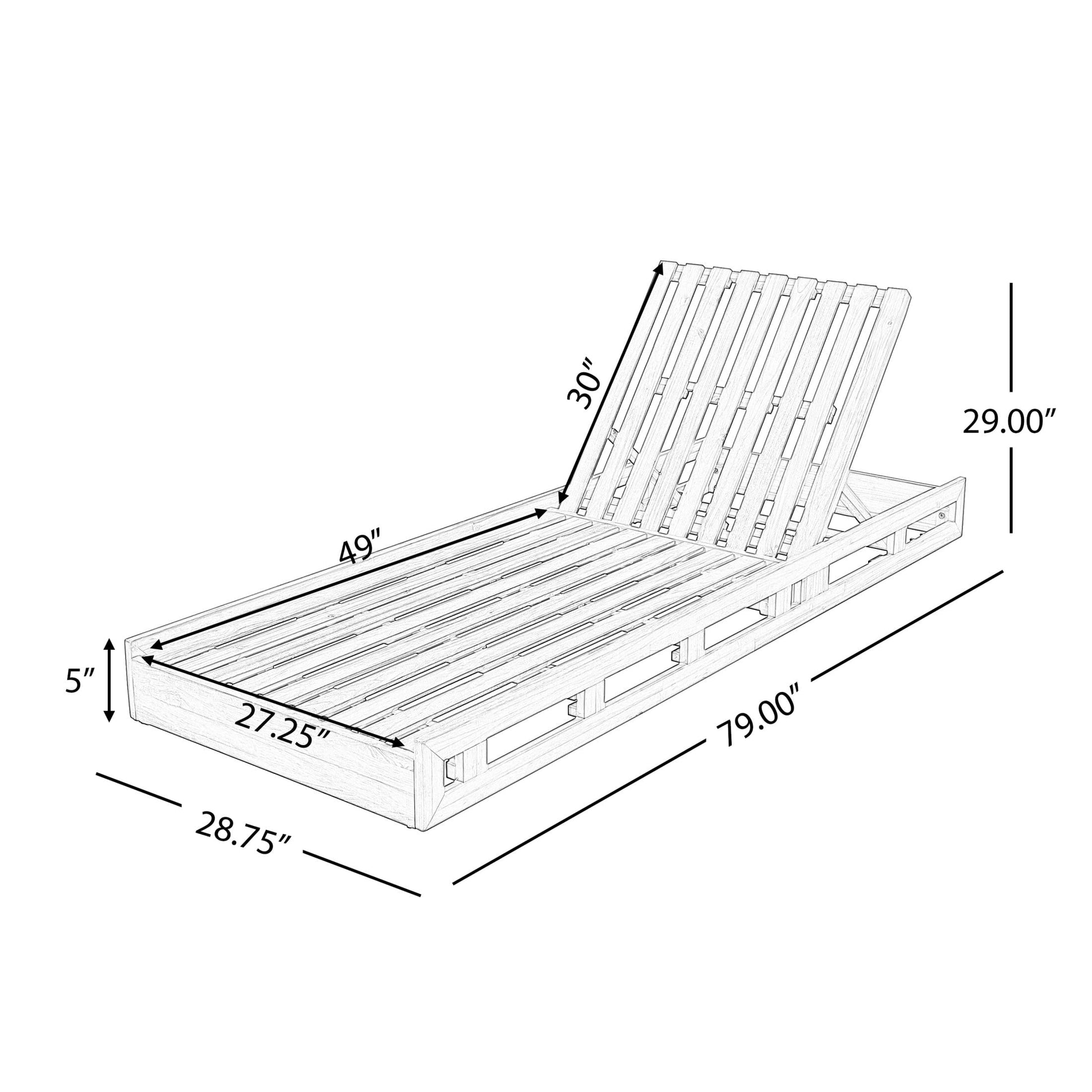 Enjoy rustic elegance and comfort with this outdoor chaise lounge chair, crafted from durable Acacia solid wood with a hand-applied teak finish that highlights its natural grain. The lounge features a breathable slatted base and an ergonomic curved shape that offers optimal lumbar support and airflow. With a 4-position adjustable backrest, you can relax in your ideal reclining angle—perfect for sunbathing, reading, or enjoying poolside views. This chair offers ample lounging space while maintaining a sleek profile suitable for patios, gardens, or terraces. Its weather-resistant construction makes it ideal for year-round outdoor use, combining comfort, functionality, and timeless rustic charm.