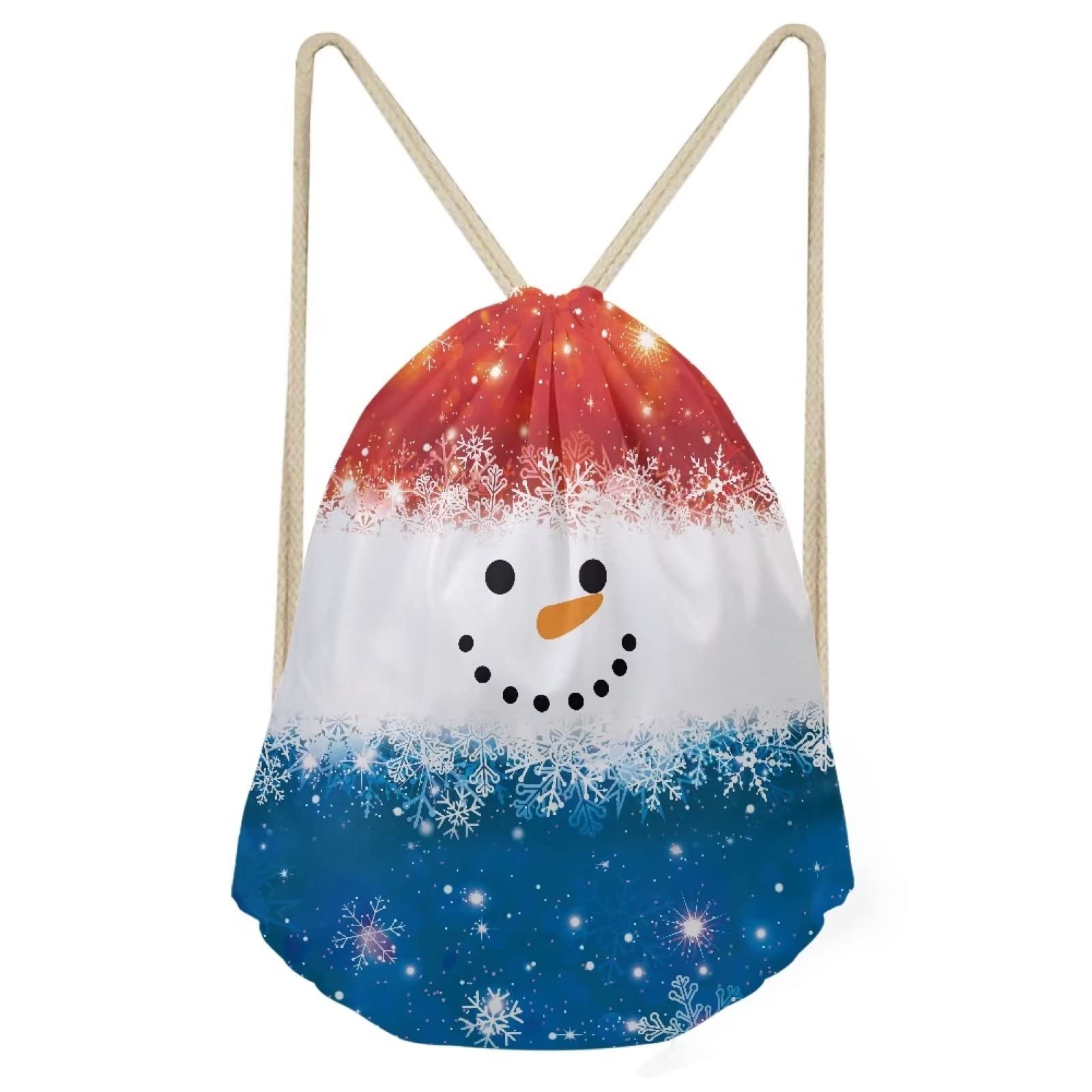 COEQINE Candy Gift Bag Women Men Drawstring Bag Chrsitmas Casual Backpack Sport Gym Sackpack for Girls Boys Print Cute Snowman Blue Red