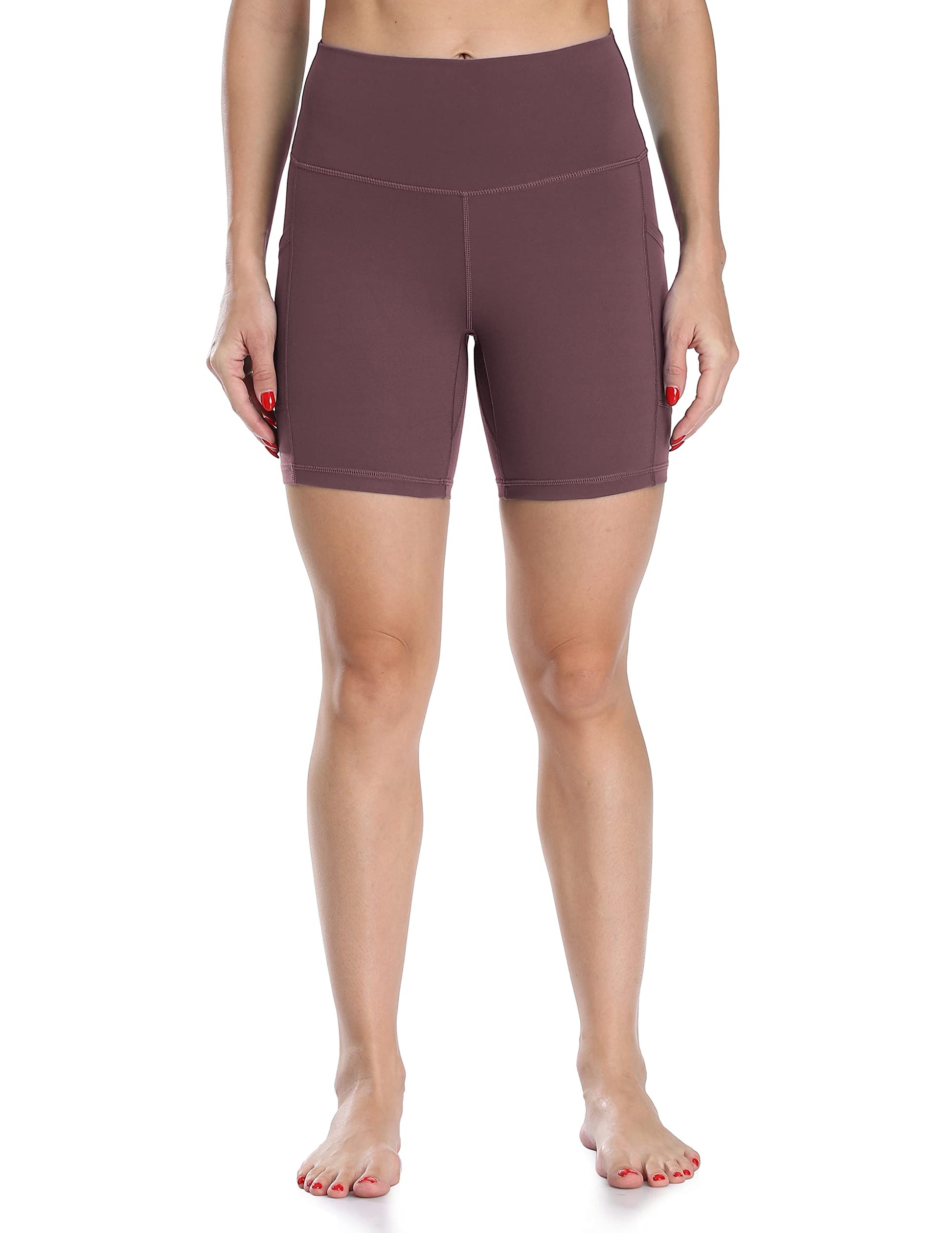Colorfulkoala Women's High Waisted Biker Shorts with Pockets 6" Inseam Workout & Yoga Tights (XS, Dusty Red)