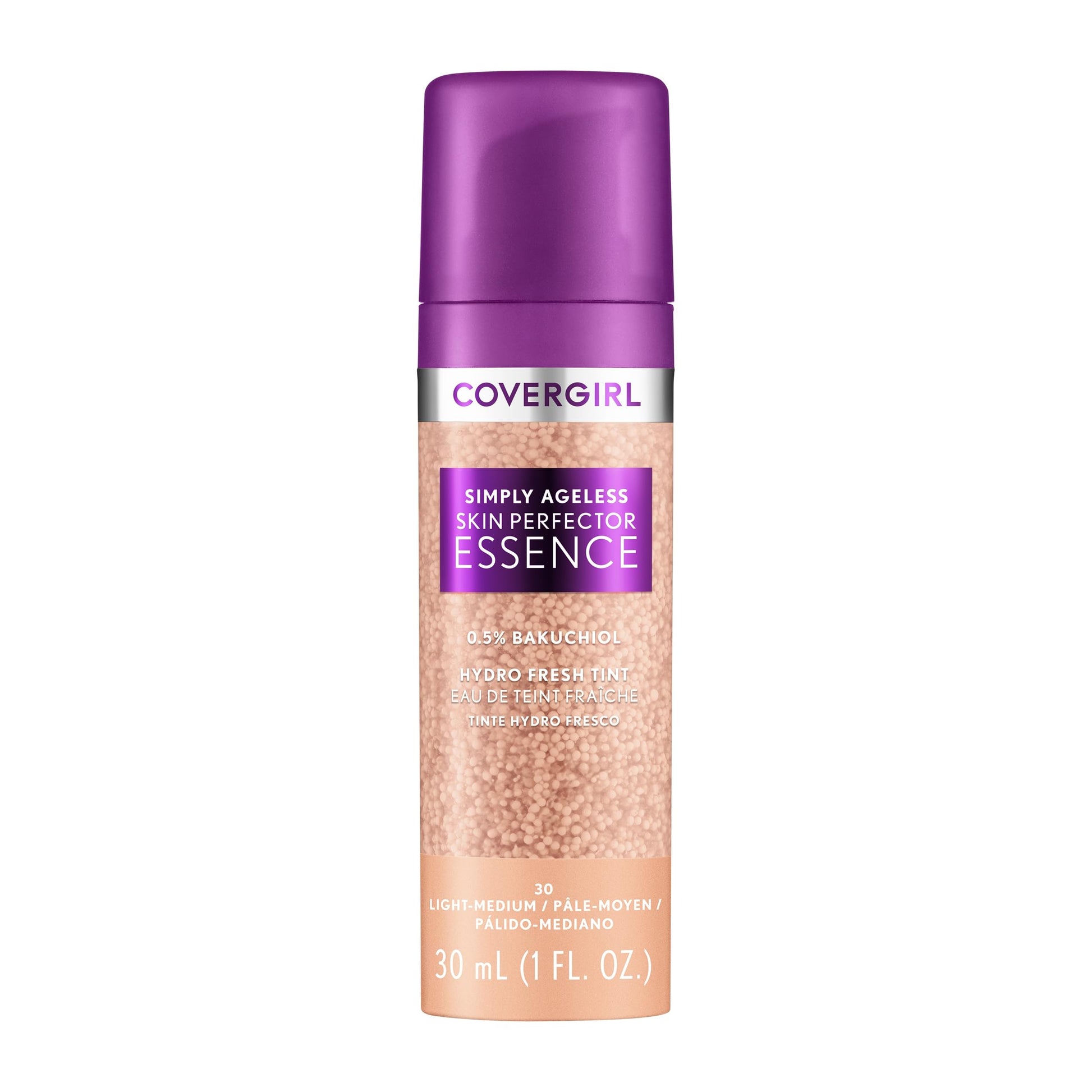 Covergirl Simply Ageless Skin Perfector Essence Foundation, 30 Light-Medium, Tinted Skin Perfector, Skincare Makeup Hybrid, Sheer Tint, Radiant Finish, Skin-Like Finish, Vegan Formula, 1.0oz