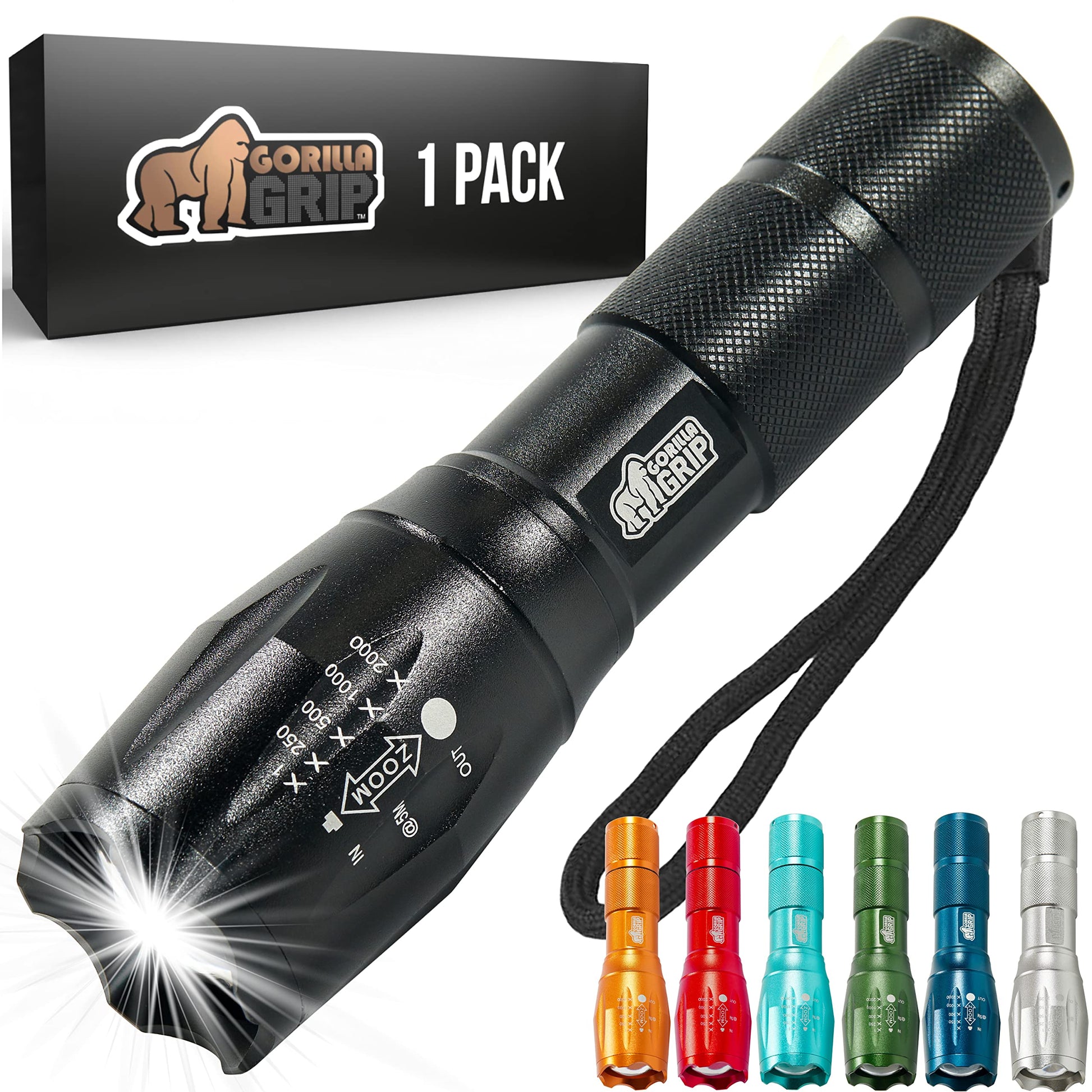 Gorilla Grip Powerful LED 750 FT Water Resistant 5 Adjustable Mode Tactical Flashlight, High Lumens Ultra Bright Battery Life Zoom Flashlights, Small Camping Car Mini Flash Light Accessories, Black