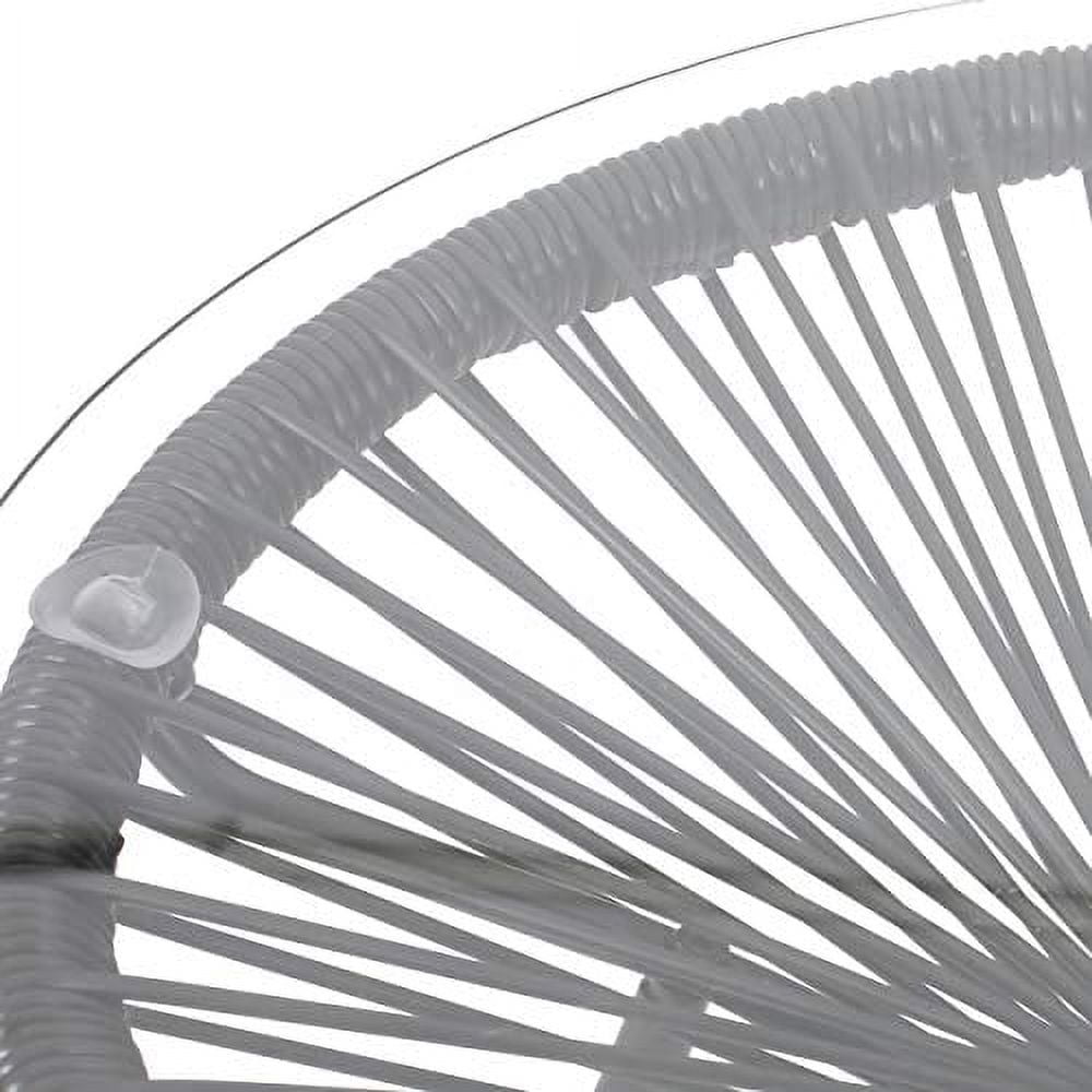 Dive into the summer with a helpful companion that will keep your chilled drinks on hand and in style. Featuring a delightful hand-wrapped look, our side table offers a durable structure and uniquely modern style. Consisting of an iron frame and wrapped wicker material, this charming piece is made to last with its sturdy construction. Whether you are lounging under the warm sun or enjoying a tray of snacks outdoors, our side table will keep you company with a refreshing touch. Includes: One (1) Side Table Table Top Material: Tempered Glass Table Top Base Material: Faux Rattan Leg Material: Iron Table Top Support Color: Black Leg Finish: Black Hand-Crafted Details Assembly Required Dimensions: 17.75 inches deep x 17.75 inches wide x 18.00 inches high.