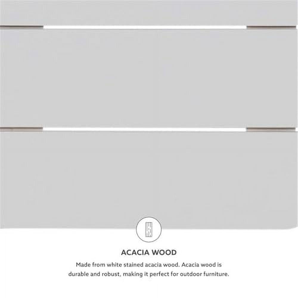 Sturdy and durable, this Outdoor End Table is the perfect size to complement outdoor chairs and loungers. The spacious top provides ample space for keeping a drink, snack and book. The white stain allows the piece to easily complement your outdoor space.Features:Material: Solid wood and acaciaFinish: WhiteIndoor/outdoorSturdy and durablePerfect size to complement Adirondacks or patio chairs.Spacious topSpecifications:Product Dimensions: 18.11'H x 18.11'W x 18.5'DProduct Weight: 8.82 lbsWeight Capacity: 40 lbsAssembly Required: Some Assembly Required