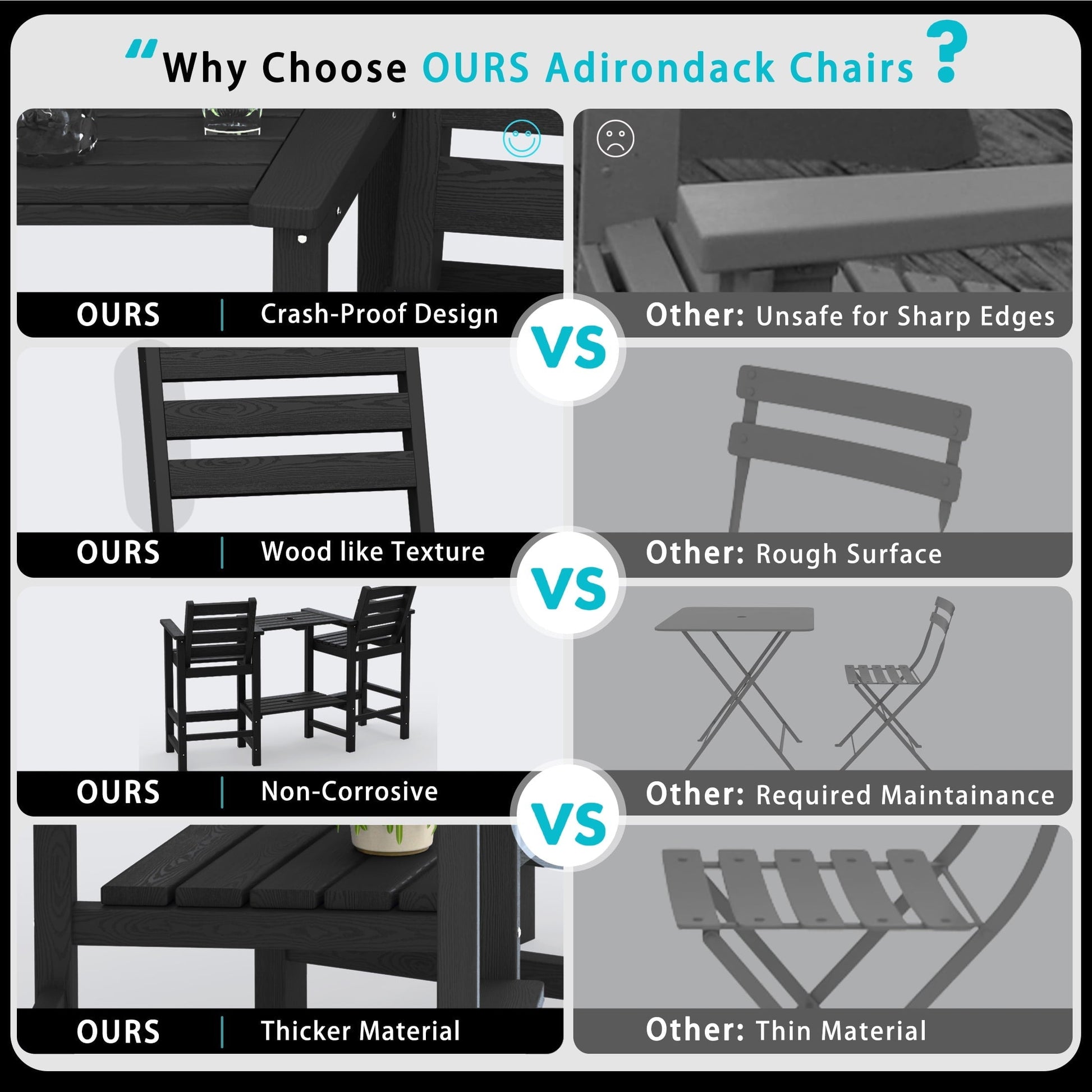 This Tall Adirondack Chair seamlessly combines timeless smooth lines with modern minimalist aesthetic style. They are highly suitable for use in various places, such as terraces, pool sides, balconies and backyards, helping you easily create an outdoor leisure space. The detachable connecting tray between the armrests provides additional space for holding a few drinks and some snacks. There is a 2-inch diameter hole in the center of the tabletop, making it convenient for you to unfold a rain. The curved backrest is ergonomically designed, effectively promoting weight distribution and waist support. We are confident in the quality of our double-person Adirondack chair set and ensuring your satisfaction is our top priority.
