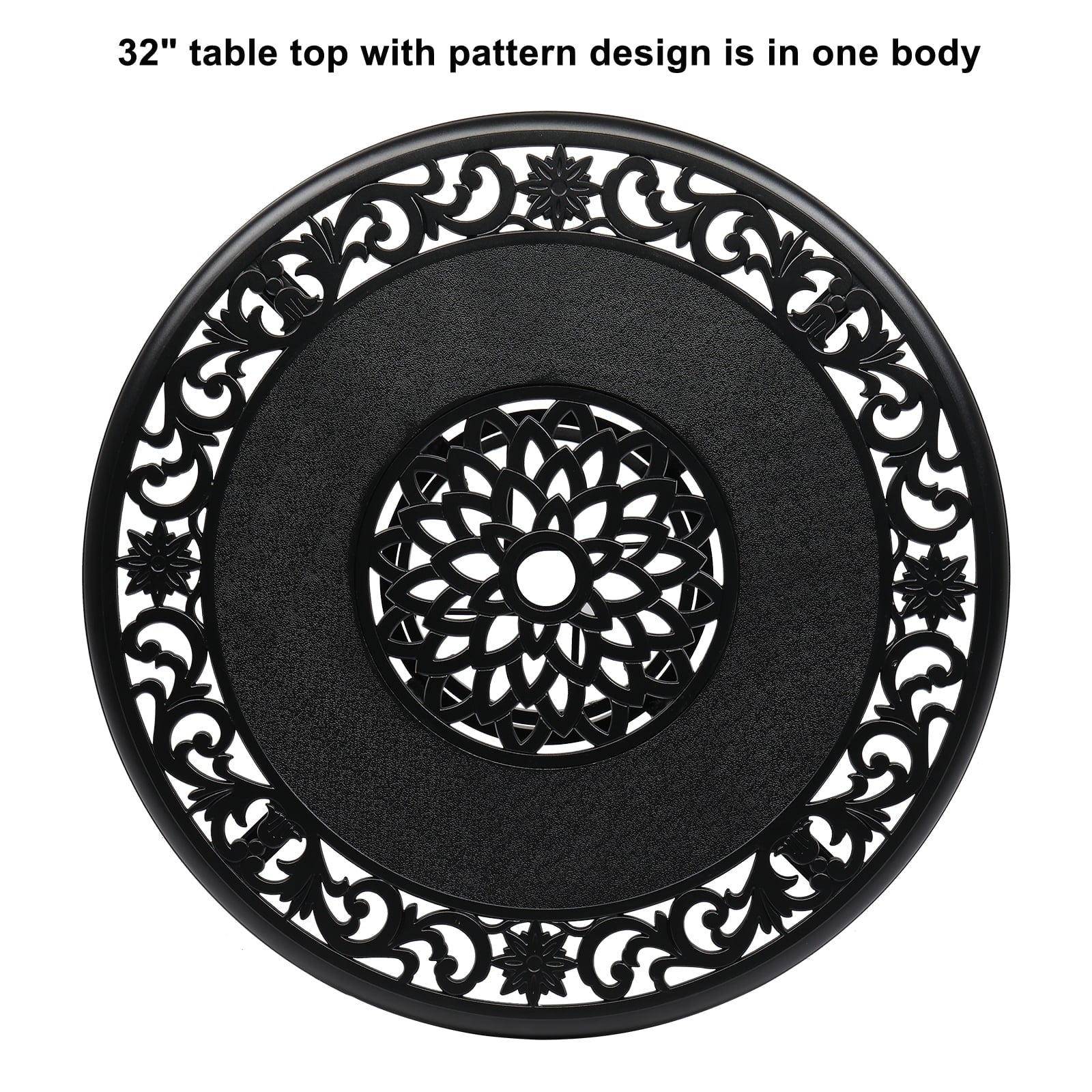 HiiKaa 32 in Cast Aluminum Patio Outdoor Bistro Round Dining Table with Frosted Surface,Bronze
