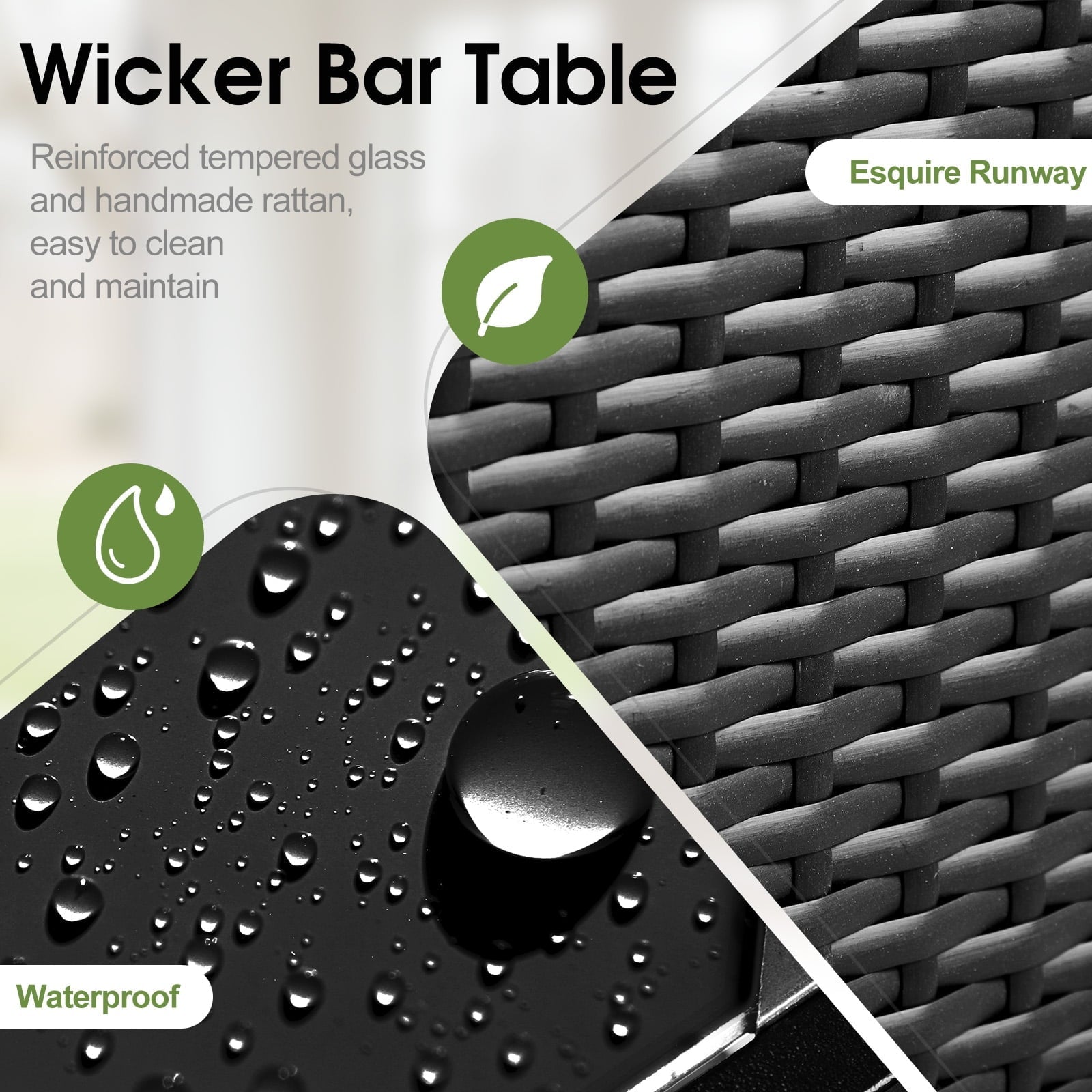 HiiKaa Large Outdoor Kitchen Wicker Island,Rolling Cart & Patio Bar Table with Wheels and Black Glass Table Top for Backyard,Poolside,Black