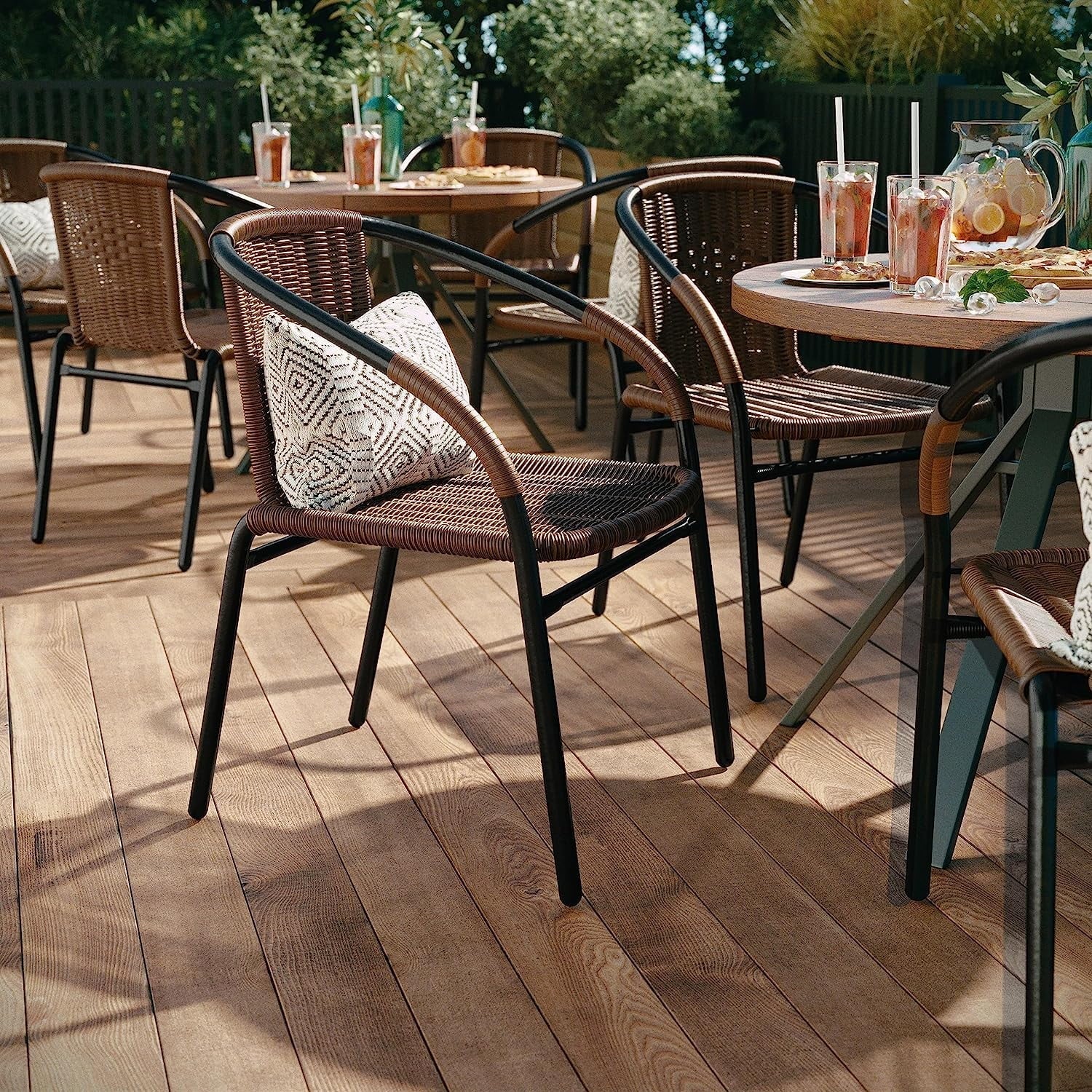 Jumpeak Lila Modern Rattan Indoor/Outdoor Stackable Dining Chairs, Stacking Rattan Bistro Chairs for Patio or Restaurant, Set of 4, Brown