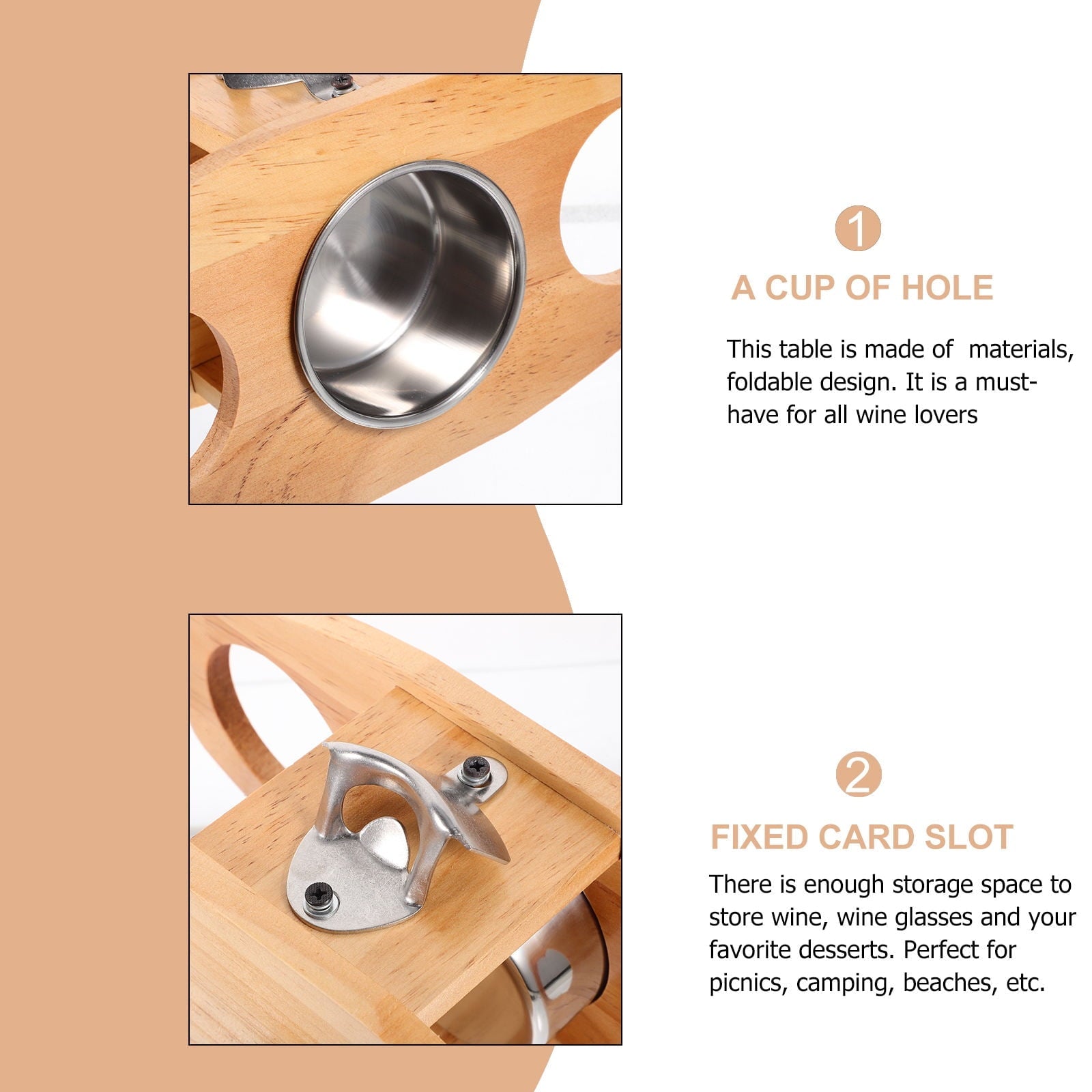 This table is made of , durable, and foldable design. It is a must-have for all wine lovers. There is enough storage space to store wine, wine glasses and your favorite desserts. Perfect for picnics, camping, beaches, etc.-portable wine table