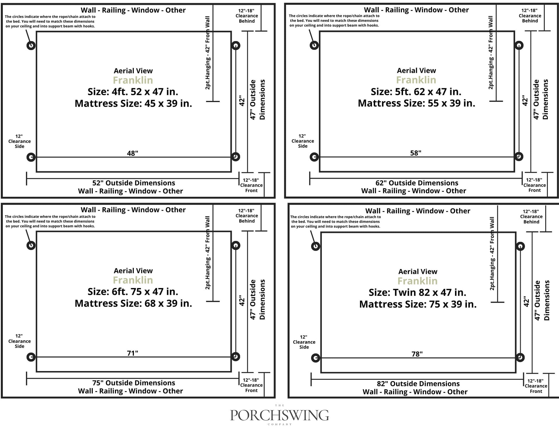 Expertly handcrafted by Amish artisans, the Keystone Amish Co. Franklin Porch Swing Bed is built to last using high-quality, knot-free yellow pine. Featuring a classic slat-back design and exceptional attention to detail, it’s available in a range of rich stains or vibrant paint colors. Durable 100% acrylic exterior paint and eco-friendly soy-based wood stain provide lasting protection. Made in the USA, this swing requires assembly and can be hung from either 2 or 4 points. It’s designed for comfort, with a 7-inch height from the seat to the top of the armrests. Add your favorite cushion (sold separately) for maximum relaxation. Includes tan pro-manila hanging ropes for ceilings up to 10 ft.