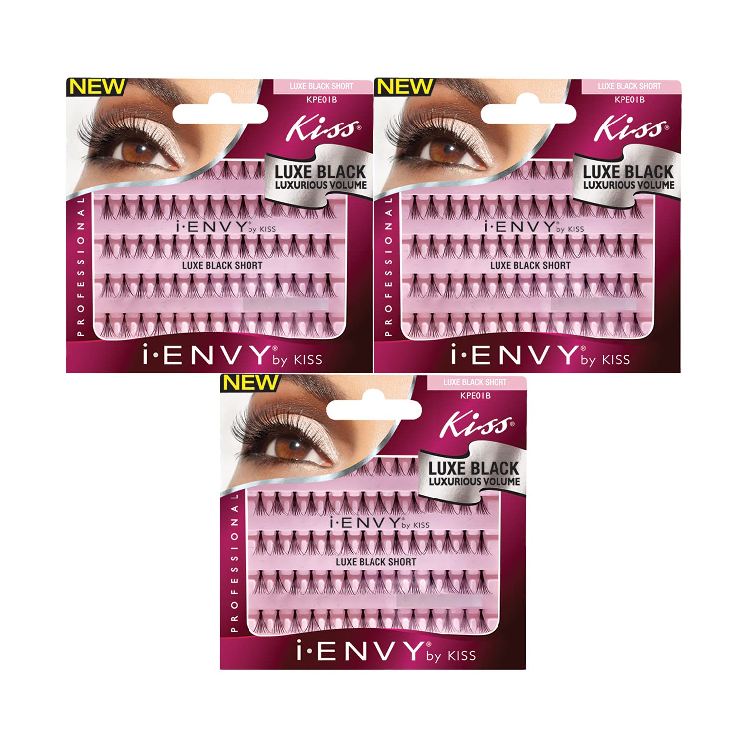 Kiss Individual Flare, Luxe Black, Short (Pack of 3)