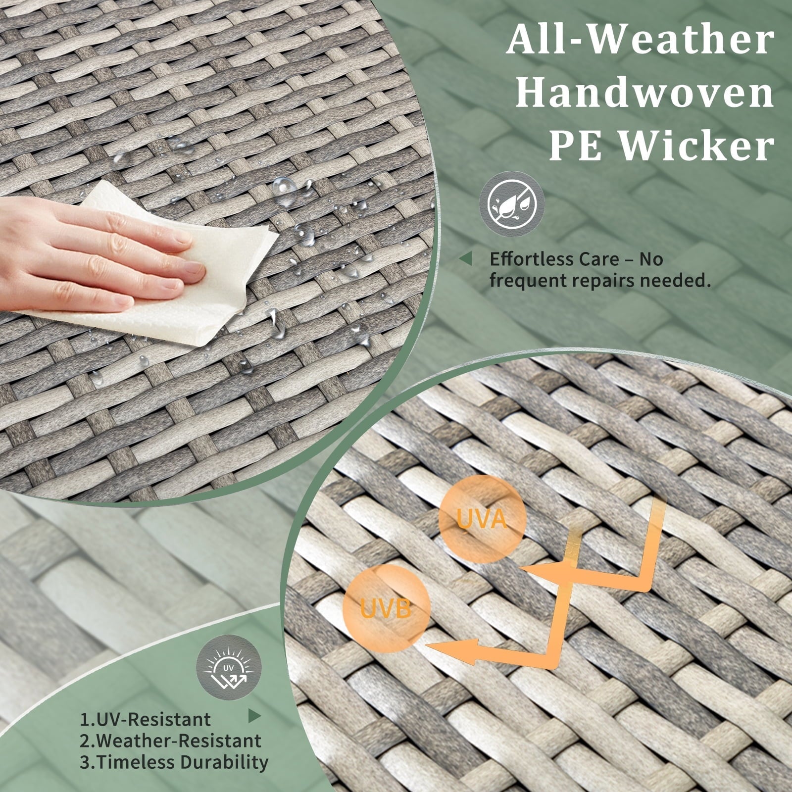 1. Material: PE Rattan, Iron, PVC Board