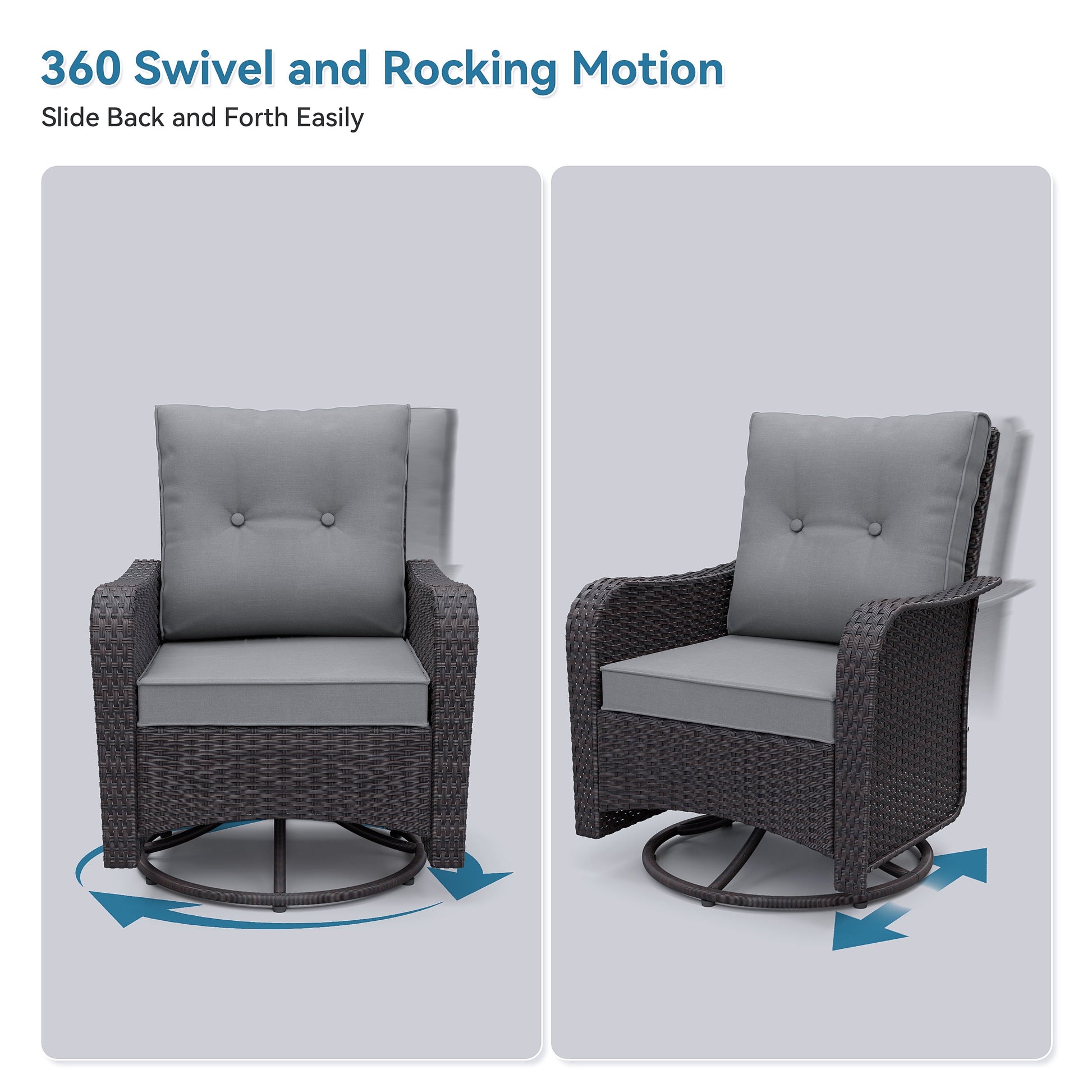 Kullavik Wicker Swivel Rocker Patio Chairs Set of 4,Swivel Rocking Chairs with Thickened Cushions,All-Weather Patio Wicker Chairs for Garden,Deck,Backyard,Grey