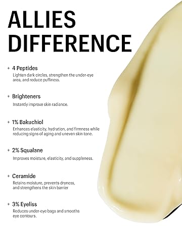 Allies of Skin Peptides Firming Eye Cream | Under Moisturizer for Dark Circles & Puffiness Bakuchiol, Ceramides and Vitamin C Fine Lines Area 0.5 oz