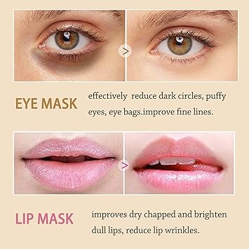 - 【Great Value Pack Set】The combination of 10 pieces of collagen crystal lip mask and 10 pieces of 24k gold eye mask is cool to the touch, stimulates and regenerates skin cells, improves dry and dull lips, removes dark circles, and provides double care for lips and eyes.