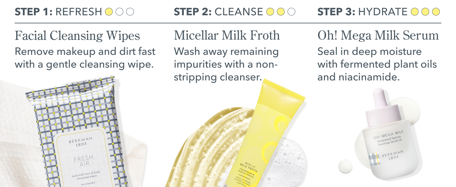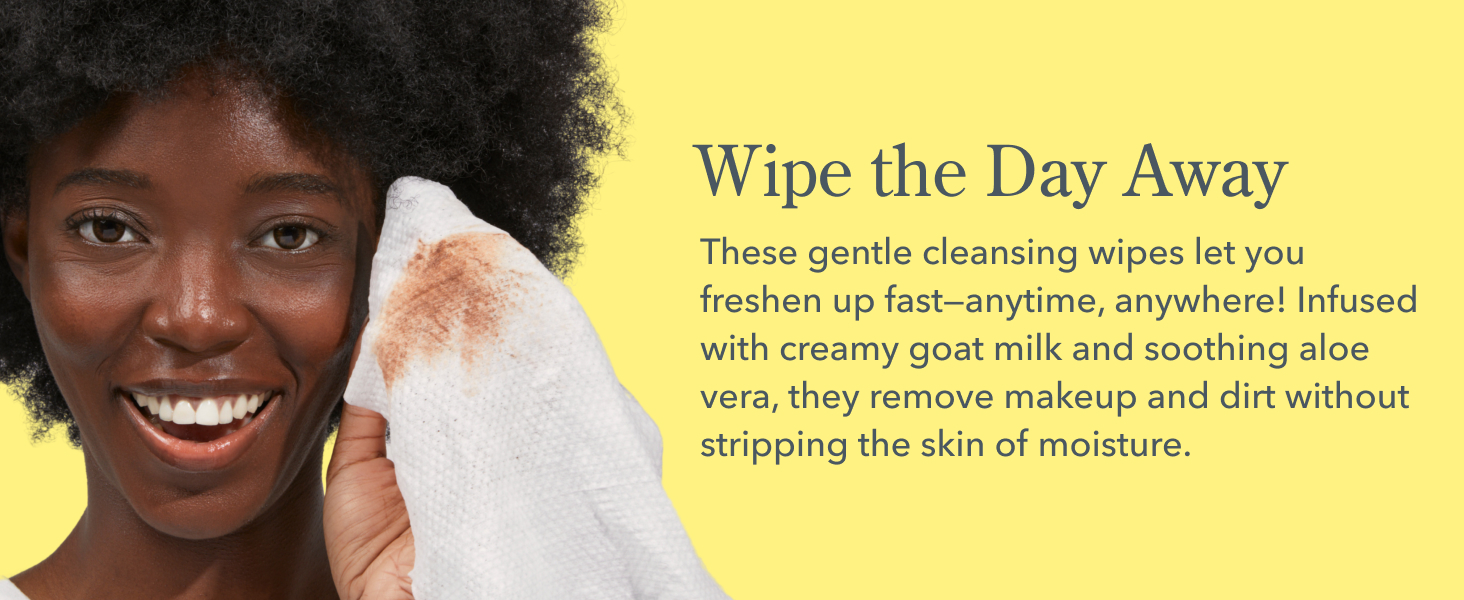 - GOAT MILK FACE WIPES - Clean your face anytime, no matter how far you are from running water. These fragrance-free moisturizing wipes remove impurities & leave skin visibly refined.
