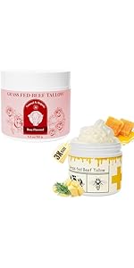 - 【Moisturizing and Nourishing】Our whipped beef tallow for skin is ideal for all skin types, particularly dry skin. Rich in fatty acids and triglycerides, whipped beef tallow delivers deep, long-lasting hydration to nourish the skin effectively. By creating a natural moisture barrier, whipped beef tallow for skin locks in hydration, prevents water loss, and provides continuous relief. This helps maintain soft, supple, and healthy skin while supporting its natural protective functions.