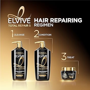 L'Oreal Paris Total Repair 5 Damage Erasing Balm is a rinse-out hair mask that repairs up to one year of damage to hair's smoothness in 1 use. Both powerful and luxurious, this hair treatment for damaged hair instantly repairs the 5 signs of damage - split ends, weakness, roughness, dullness, and dehydration. For best results, use with Total Repair 5 shampoo. Reverses damage to hair's smoothness with daily use, when using the system of Total Repair 5 shampoo & balm. When using complete system of shampoo, conditioner, and treatment. Packaging may vary, what you receive may not be what is reflected on site.