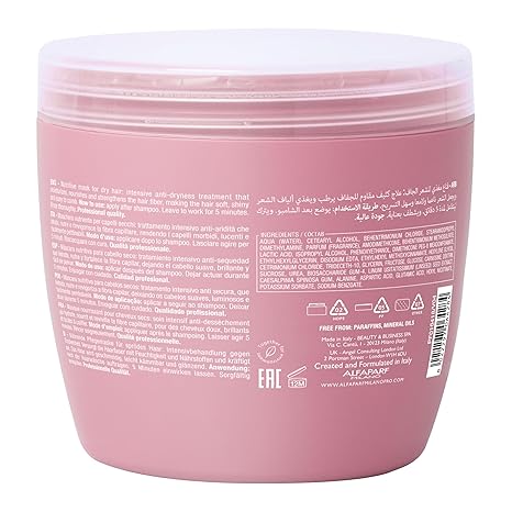 Alfaparf Milano Semi Di Lino Moisture Nutritive Mask for Dry Hair - Safe on Color Treated Sulfate, Paraben and Paraffin Free Professional Salon Quality