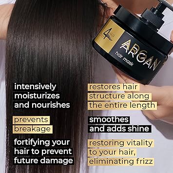 Damaged, dry, brittle and lifeless hair is no longer a problem. The Argan Hair Mask is powerful repairing treatment based on argan oil, macadamia oil, rich in amino acids, omega-6, omega-3, vitamin A, vitamin E, formulated to restore vitality to hair that has been damaged by chemical processes, straightening and blow-drying. Rich in moisturising and nourishing properties that your hair needs to be healthy. Repairs split ends and adds a beautiful shine to your hair. Restores damaged hair and reconstructs its structure. Nourishes strands from the inside out and gives the hair a smoothing effect without taking away volume.