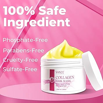 Collagen Hair Mask for Dry Damaged Hair, Deep Repair Conditioning, Hydration and Shine All Types 8.45 Oz