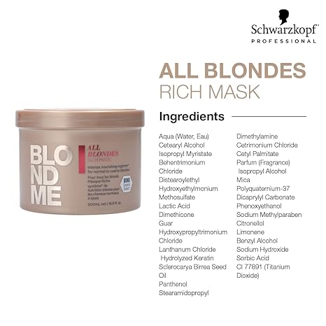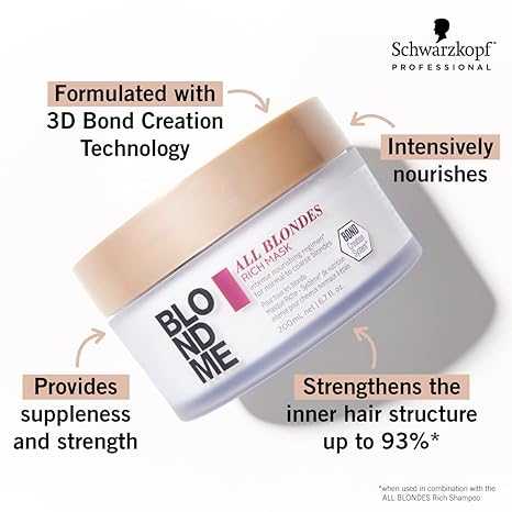 BlondMe All Blondes Rich Mask - Deep Conditioning Bond Restoring Hair Treatment - Smoothing and Nourishing for Normal to Coarse Color Treated Natural Blonde