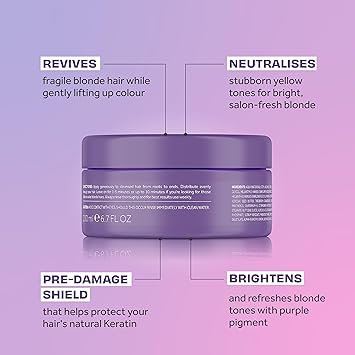 - WHY YOU'LL LOVE IT. It repairs fragile blonde hair while gently lifting up colour.