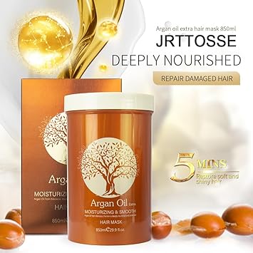 Deep repair natural collagen hair mask is ideal for all hair types. JRTTOSSE argan oil hair mask works to reduce frizz and flyaways with straight hair and naturally enhances curls and bounce of voluminous locks. Get the look you want, with this rich Morrocan Argan oil treatment from Pure Nature.
