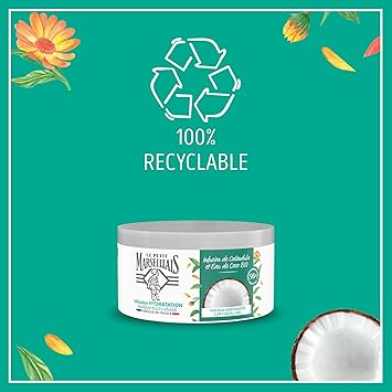 Le Petit Marseillais Masque Hydratation Intense pour Cheveux Secs et Abîmés, Infusion Calendula & Eau de Coco Hydration Mask for Dry and Damaged Hair,