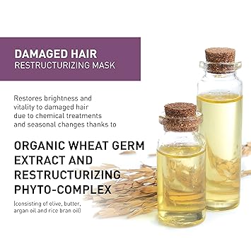 Clean Beauty Damaged Hair Restructuring Mask, Organic Wheat Germ Extract, Vegan, 8.45 fl oz