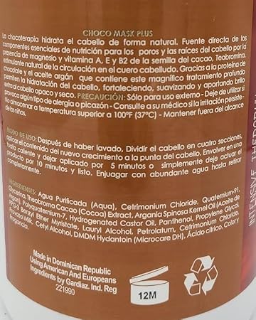 Choco-Therapy Hydrates Hair Naturally. Vitamin A, E and B2 of the Cocoa Bean. Chocolate Protein.