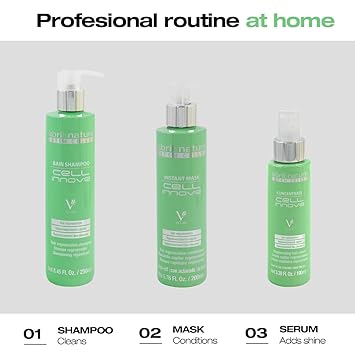 Benefits: Improves the health and longevity of the hair, and as a result you obtain a regenerated hair fibre with a young, healthy and shiny look. Rejuvenates the hair fibre from the inside. The hair fibre recovers the vibrancy, feel and shine characteristic of young hair. Improves the elasticity and resistance to breakage of the hair fibre. Improves the overall appearance of the hair, by smoothing of the cuticle and increasing the increase of the hair. its brightness Mode: Usage: Wash your hair regularly. Leave to act for a couple of minutes and rinse first step of the complete treatment Cell Innove April et Nature.