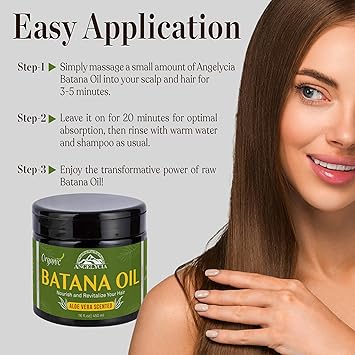 - EASY APPLICATION: Simply massage a small amount of Angelycia Batana Oil into your scalp and hair for 3-5 minutes. Leave it on for 20 minutes for optimal absorption, then rinse with warm water and shampoo as usual. Enjoy the transformative power of Batana Oil!