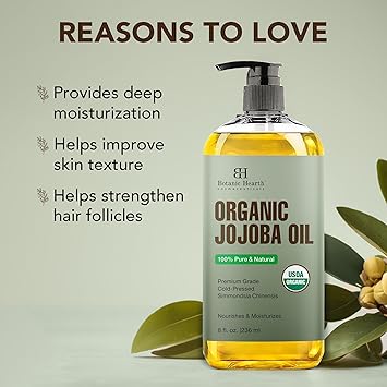 Botanic Hearth Organic Jojoba Oil (Styling Oil, 8 fl oz) | 100% Pure, Cold Pressed & Hexane Free Ideal for Skin, Hair Nails