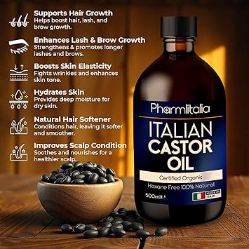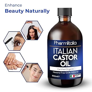 Castor Oil Organic Cold Pressed Unrefined - Wild Growth Hair Golden for Face, Scalp, Eyelashes, Skin Care and Nails Aceite De Organico Puro 500ml