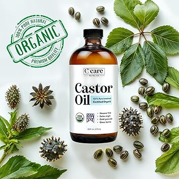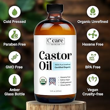 Castor Oil 100% Pure Organic Cold Pressed Unrefined Glass Bottle With Pump | USDA Certified Organic | Hexane Free Extra Virgin | For Hair Growth Eyebrows Eyelashes Skin and Castor Oil Pack Wrap | 16oz